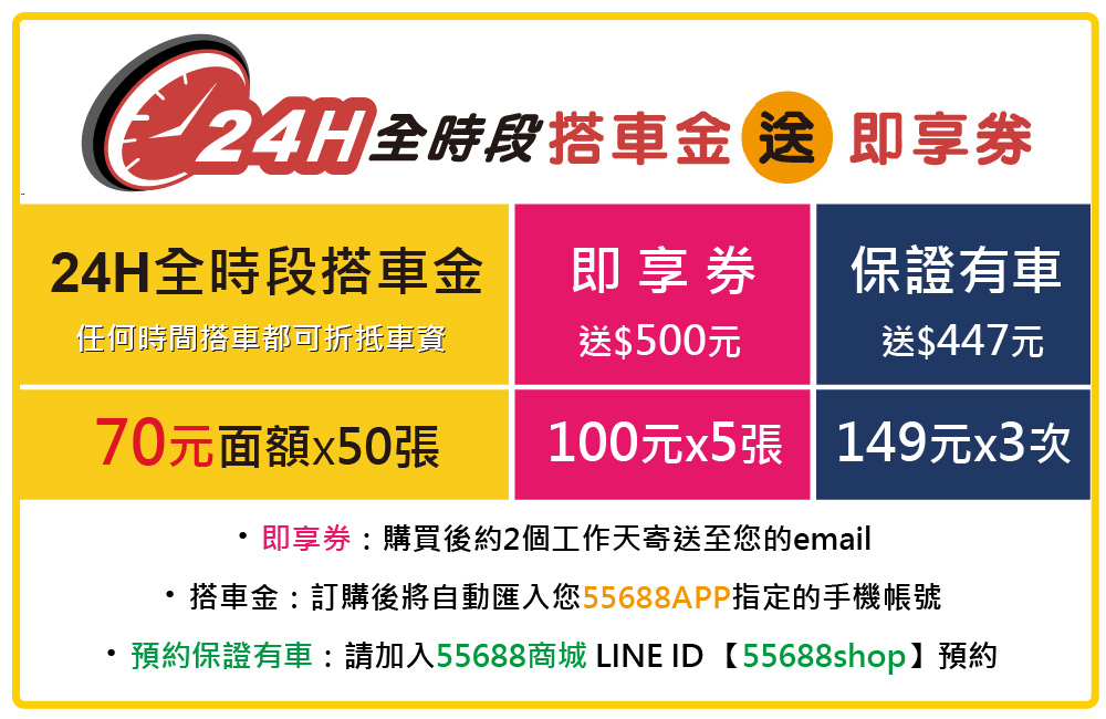 ★每月贈預約派車X3次(價值447元),請在55688商城Line客服預約。