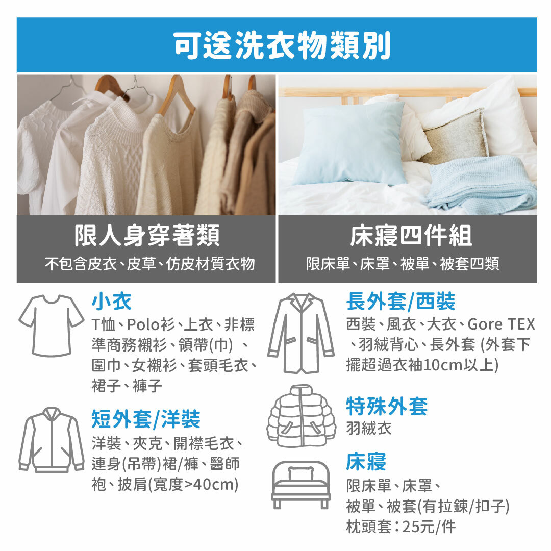 ˙ 乾洗水洗均一價,任選任洗都划算