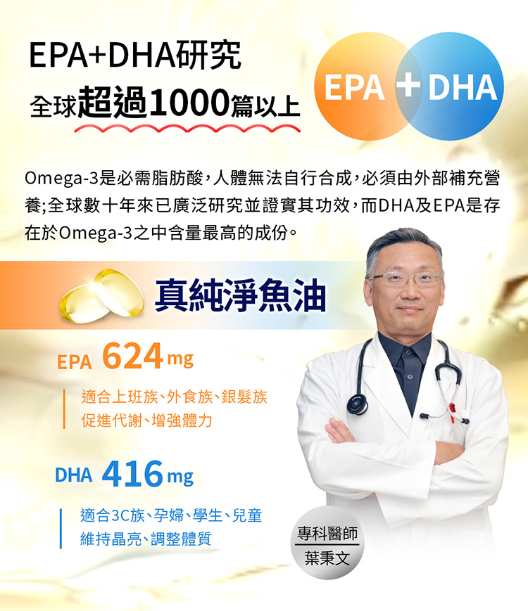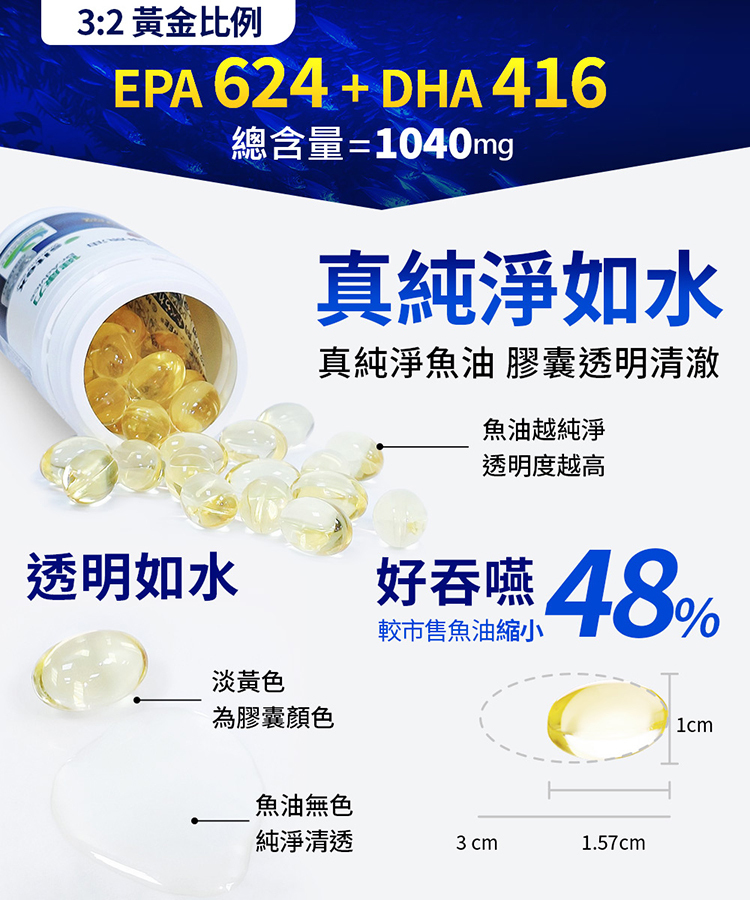 • DHA 416+EPA 624 總含量1040mg,高濃度