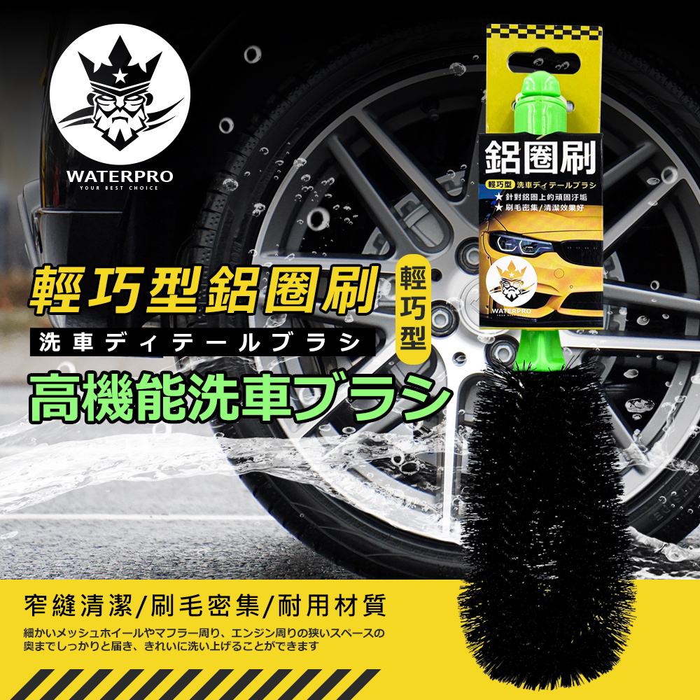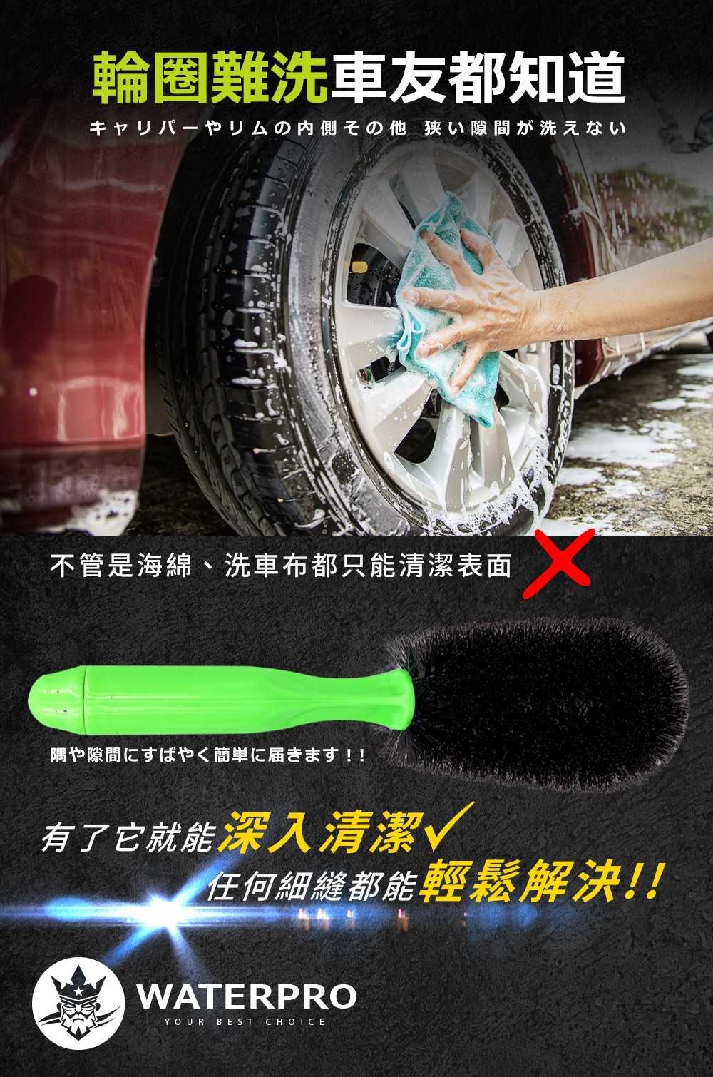 3.使用「WATERPRO輕巧型鋁圈刷」刷洗髒汙後沖洗即可