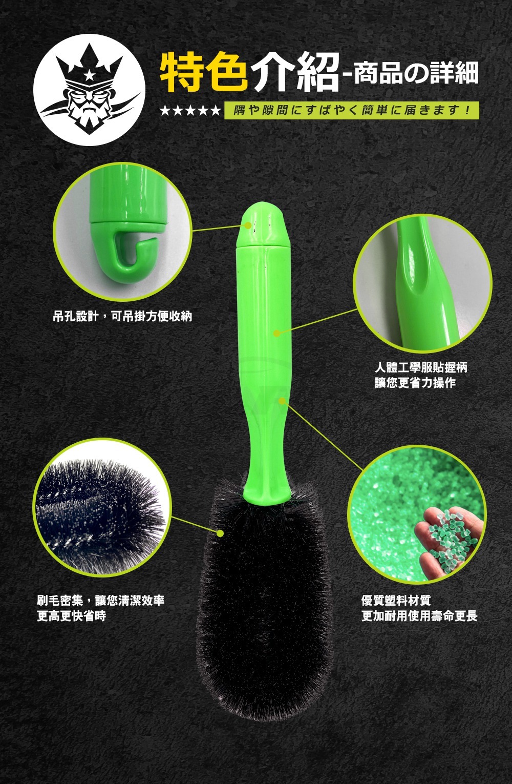 • 產品特性:服貼握把設計,省力好用。清洗愛車輪圈,超方便。狹窄縫隙處也可清洗。
