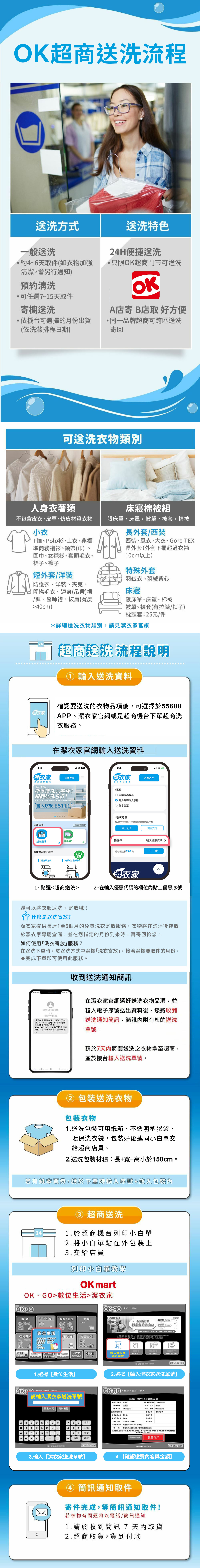 ˙ 指定『OK超商』送洗序號,首間超商可送洗棉被