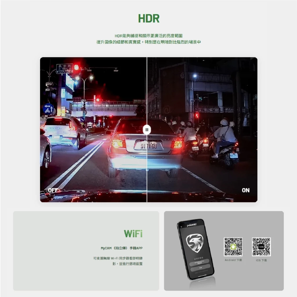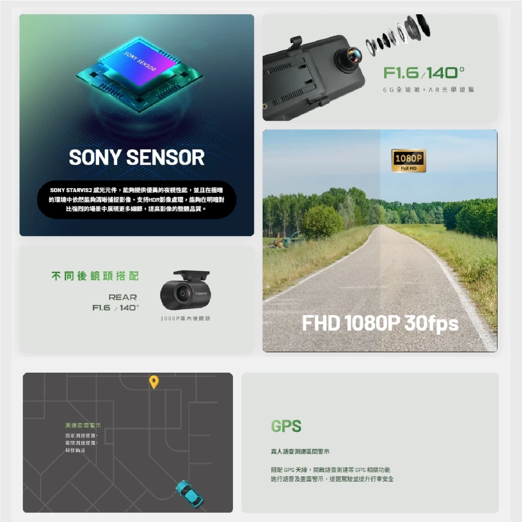 · 主機FHD 1080P HDR 30fps / 後鏡頭FHD 1080P HDR 30fp
