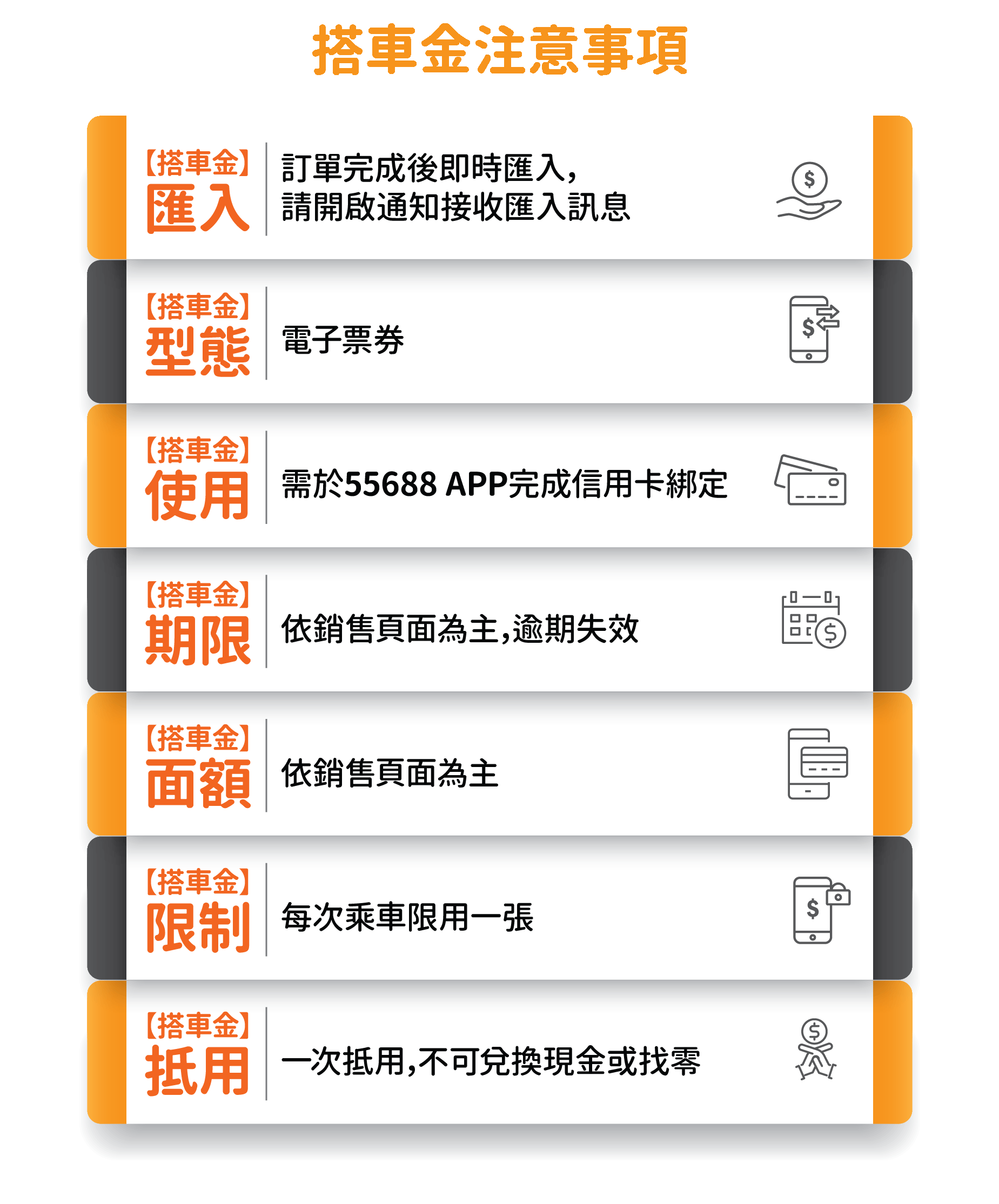 ˙若欲取消行程但已預約到車,每人僅限第一次可退回使用次數
