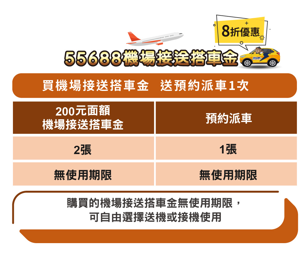 ★本搭車金適用於機場接送與日常乘車服務,採大面額設計,使用更為便利