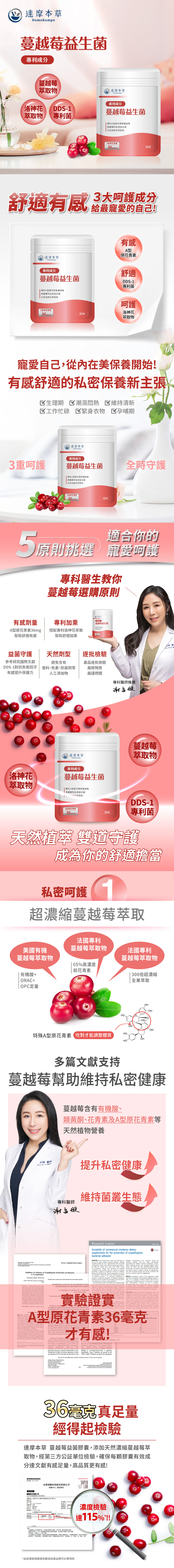 A:達摩本草的蔓越莓益生菌複方,以果肉、纖維、種籽、果皮與高倍濃縮果汁300倍製成,不使用任何防腐劑、糖、人工香料或色素,孕婦也可以吃喔!